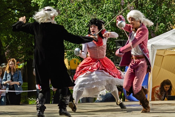 Зрители познакомятся с разными видами фехтования на показательных выступлениях, узнают, как танцевали в старину, увидят театральные постановки и попробуют свои силы на открытых уроках и мастер-классах. Участие в празднике примут школы фехтования и других боевых искусств, мастера исторической реконструкции, актеры и танцоры.